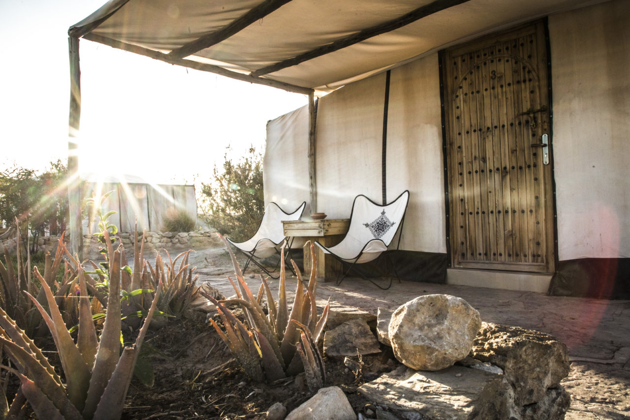 Bienvenue à l’Ecolodge Terre des Etoiles, un projet d’Oasis naturel au milieu d’un désert de pierre sec et aride… Issu d’une démarche engagée le camp procure aux invités l’occasion de saisir dans un hébergement insolite toute la magie de cet environnement saisissant. C’est sous tente, alliant tradition et modernité, qu’en toute intimité, vous profitez d’un séjour des plus ressourçants.