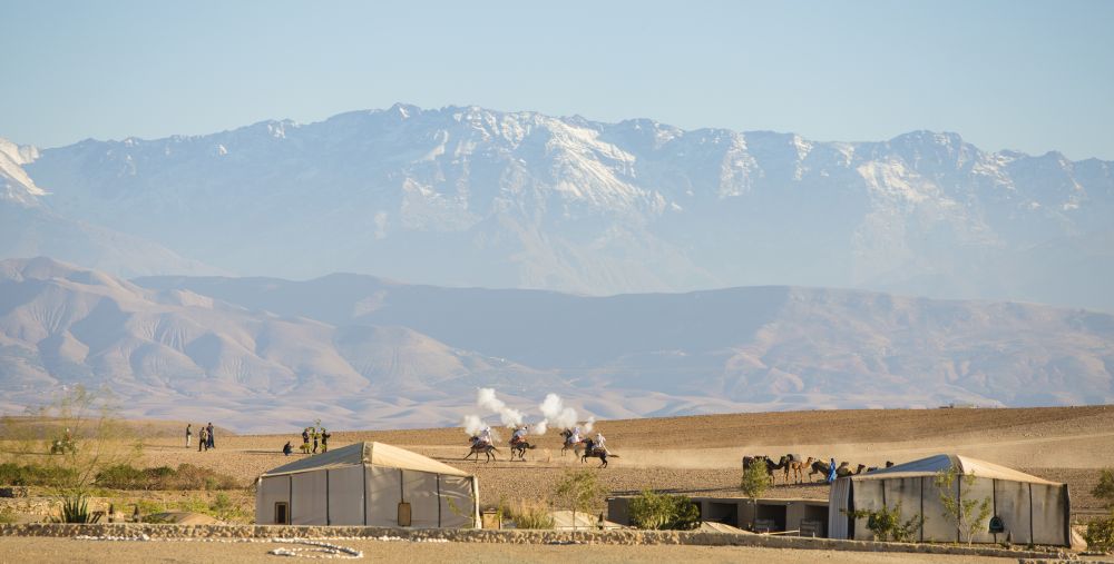 Après le déjeuner, visite de la coopérative artisanale de Tamesloht, puis retour à Terre des Etoiles pour une balade à dos de dromadaire au coucher du soleil…