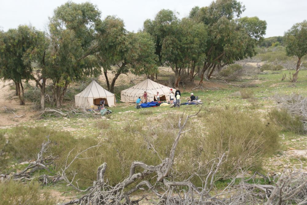 Bivouac sur les dunes surplombant l’océan.