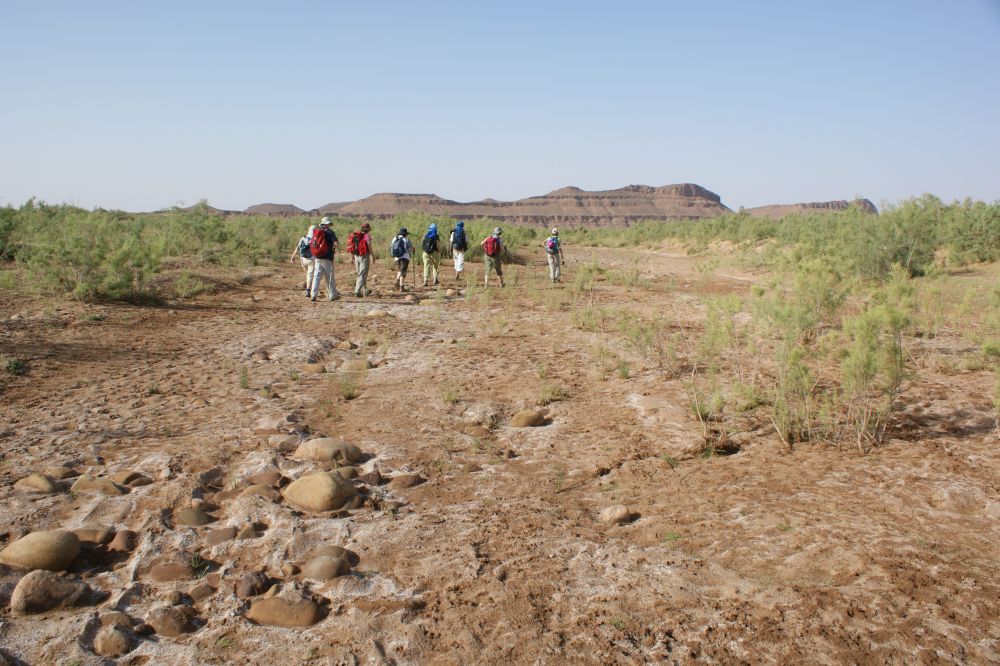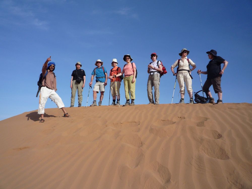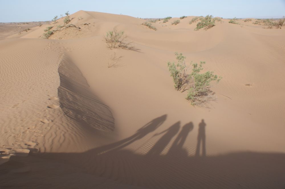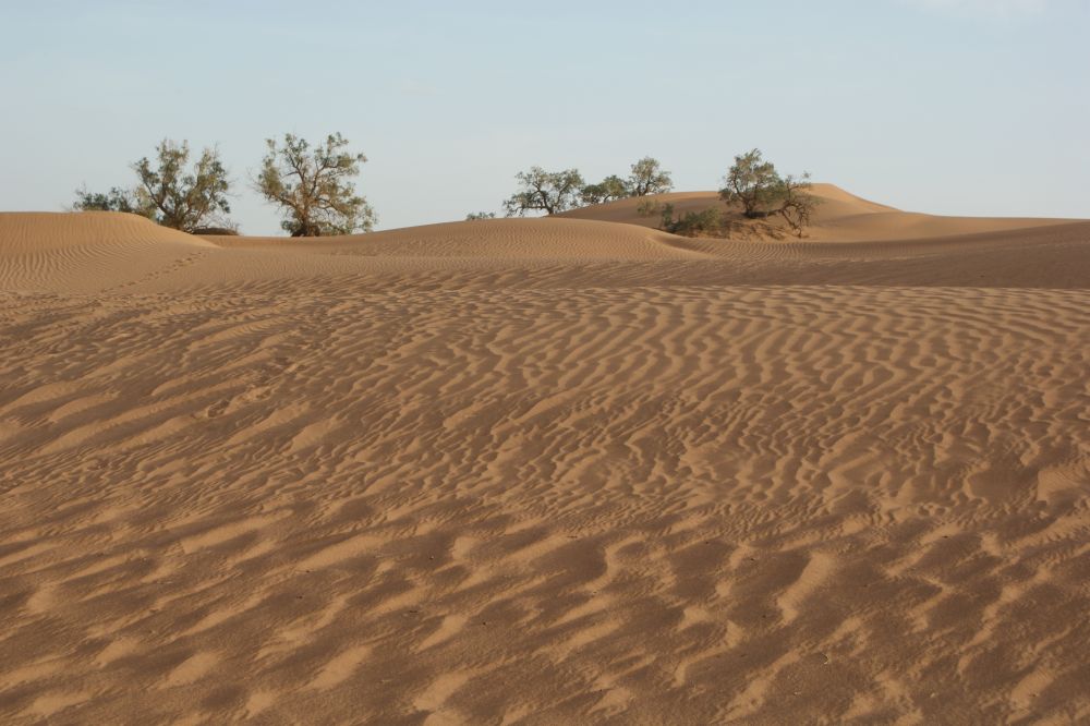 Après avoir exploré hier les palmeraies et les premières dunes, nous traverserons aujourd’hui de grands plateaux désertiques avant d’arriver dans une palmeraie où nous déjeunerons à l’ombre des palmiers dattiers. Nous pourrons constater que le désert est loin d’être monotone et que chaque instant apporte son lot de surprises. Toute l’après-midi nous marcherons à travers les petites dunes parsemées de vieux tamaris avant d’arriver au petit erg de Bounou où nous passerons cette dernière nuit sous le ciel étoilé du désert.