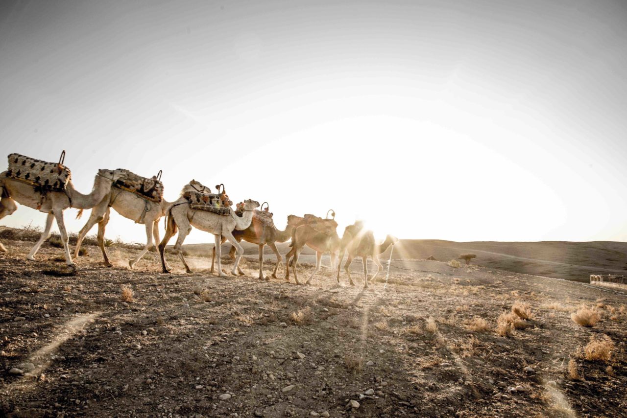 J1 : Transfert l’après-midi vers 15h de Casablanca vers le désert d’Agafay en minibus + installation dans votre tente + balade à dos dromadaire + dîner.